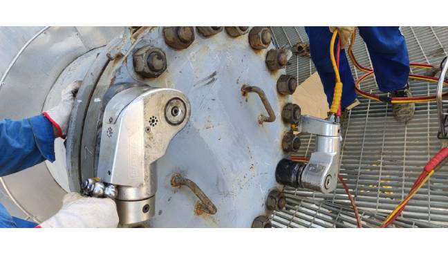 液壓扳手泵壓壓力正常,上壓驅(qū)動部位也有反應(yīng),但卻顯示無力,帶不動螺栓螺母,吃不上力,這個(gè)故障出現(xiàn)有三種可能。第一種,我們所要拆卸或者擰緊的螺栓扭矩遠(yuǎn)遠(yuǎn)高于我們所用扳手型號的最大輸出扭矩,也就是小馬拉大車就會“力不從心”轉(zhuǎn)不動。另外兩種情況都出在液壓扳手驅(qū)動部位機(jī)械故障。一個(gè)是連接銷斷裂導(dǎo)致活塞無法將力傳導(dǎo)至驅(qū)動部件;一個(gè)是驅(qū)動部件比如棘輪或者棘爪斷裂、嚴(yán)重磨損導(dǎo)致扳手驅(qū)動花齒吃不上力轉(zhuǎn)不動。