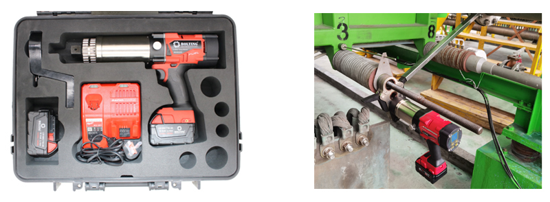 其次,同步預(yù)緊時(shí)應(yīng)使用同一廠家生產(chǎn)的相同型號鋰電扭矩扳手,這樣可以保證誤差最小,螺栓預(yù)緊力均勻分布。
