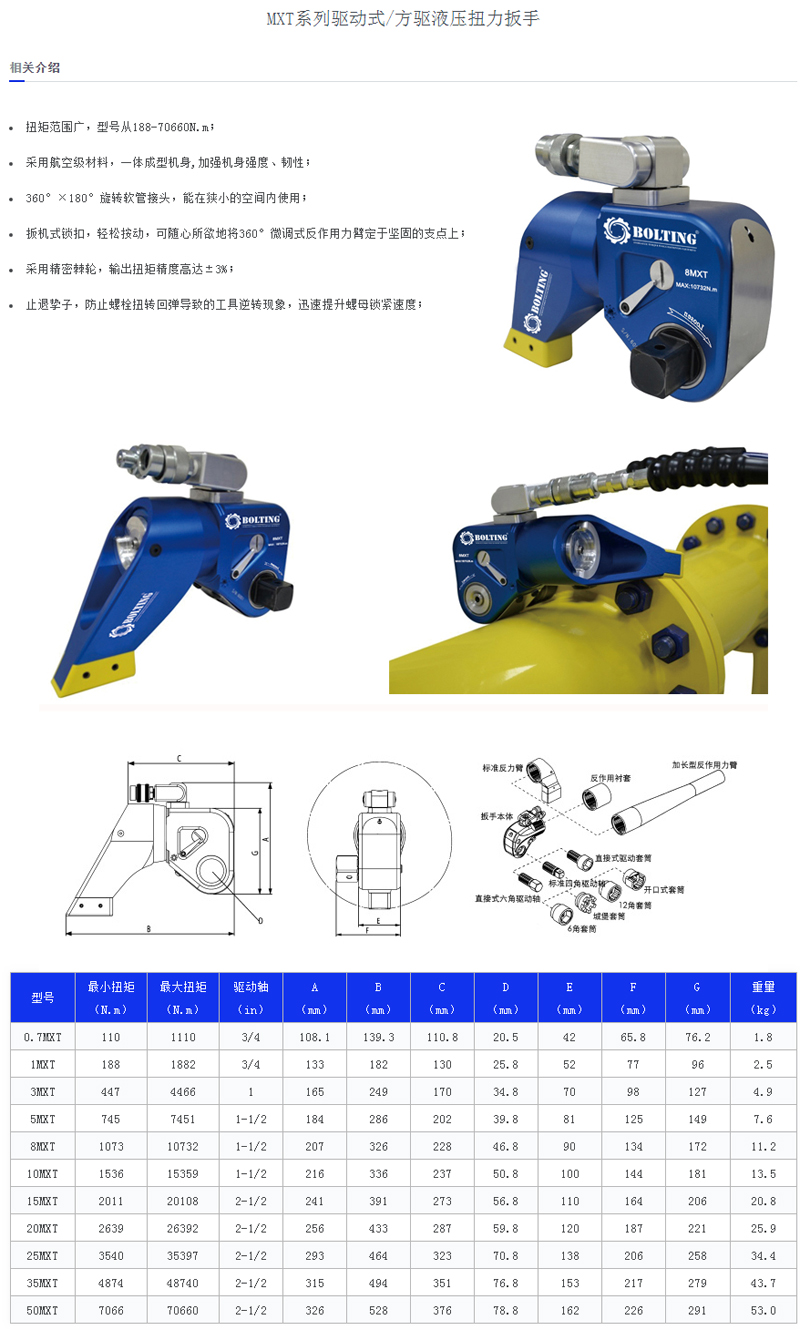 BOLTING品牌提供優(yōu)質的工業(yè)工具組合:液壓扳手、螺栓拉伸器、液壓泵站、力矩倍增器、電動扭矩扳手、氣動扭矩扳手、液壓拉馬、液壓壓床、法蘭分離器、螺母破切器等多種類的產(chǎn)品,滿足各種客戶應用要求。